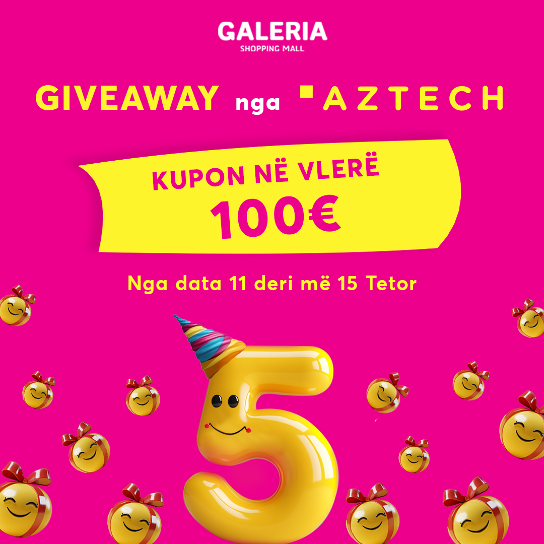 Për 5 vjetor të GALERIA - fito kupon në vlerë 100€ në @aztechks !❤️