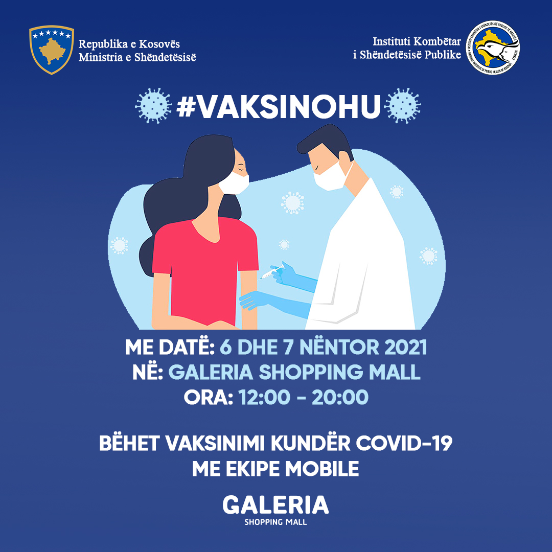 Galeria Shopping Mall në Prizren ofron hapësirë për qendër mobile të vaksinimit e cila do të jetë hapur nga data 6 nëntor, prej orës 12:00 – 20:00.
